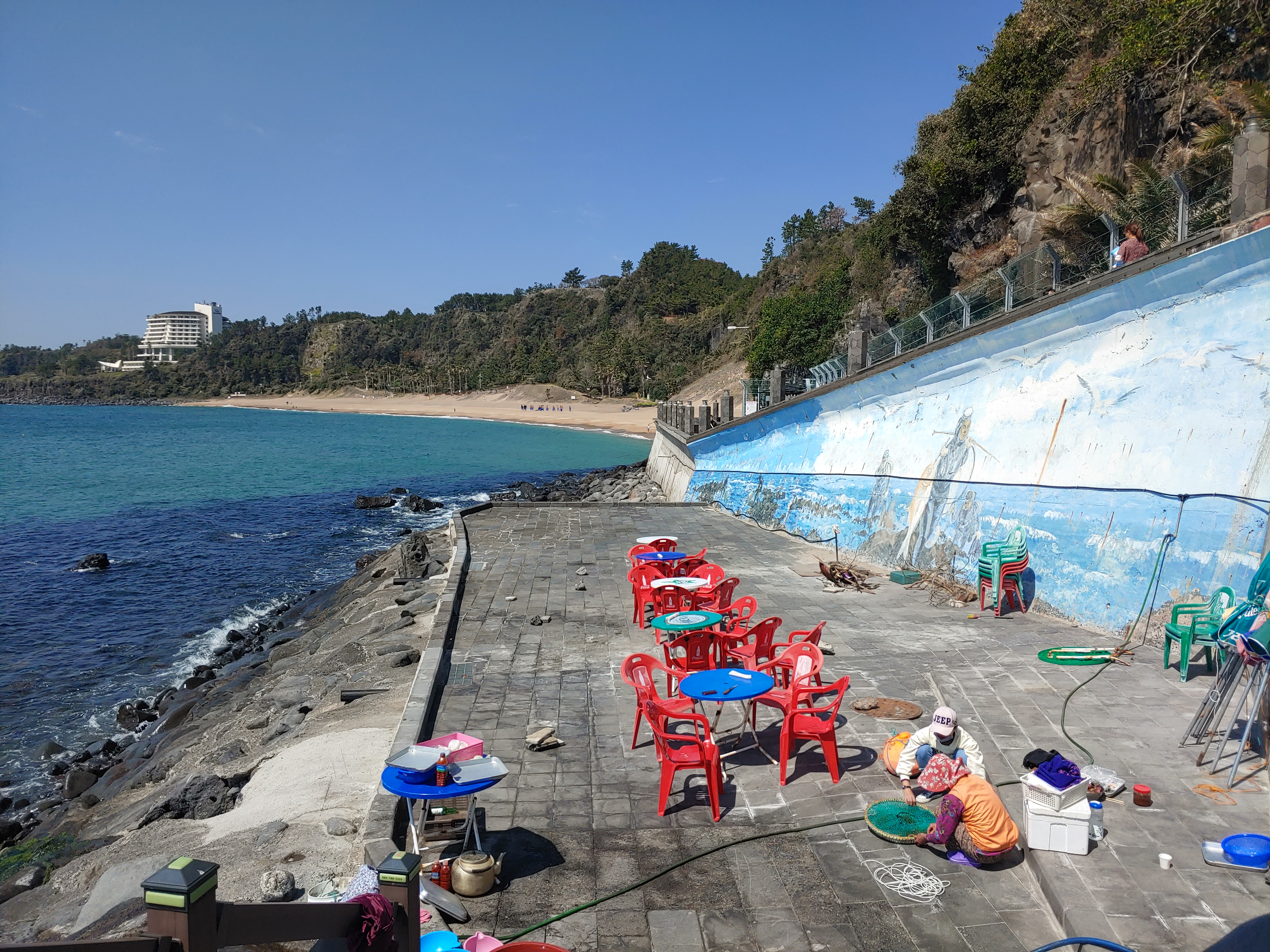 아래로 좀 더 내려오면 해녀분들이 바다에서 잡은 싱싱한 해산물을 먹을 수 있는 색달해녀의 집이 있어요