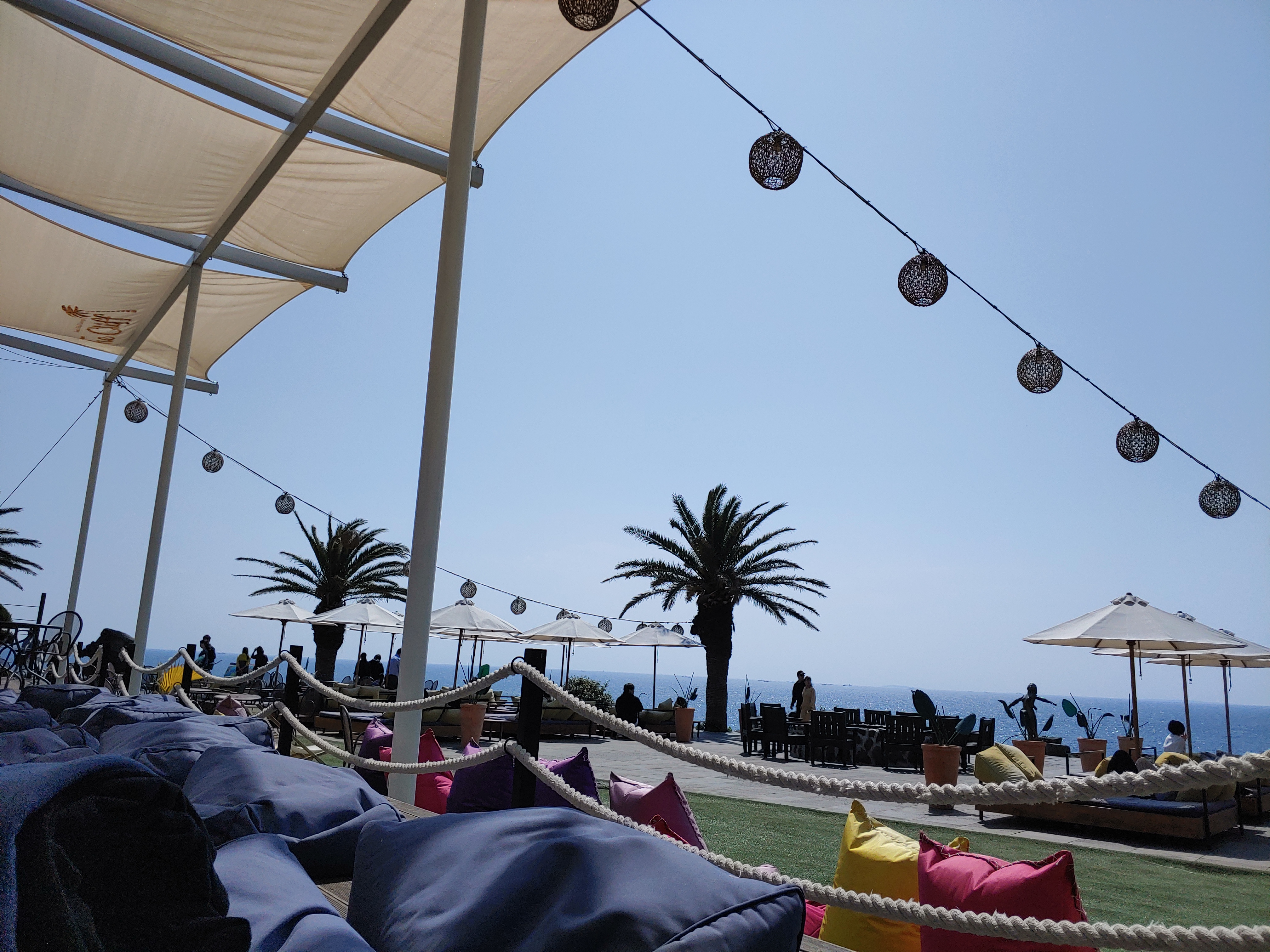 날이 너무 좋아서 하늘이며 바다며 반짝반짝하고 분위기까지 이국적인 뷰맛집 '더 클리프' 카페 제주도 중문에서 카페 이쁜곳 찾는다면 더 클리프 추천해드려요