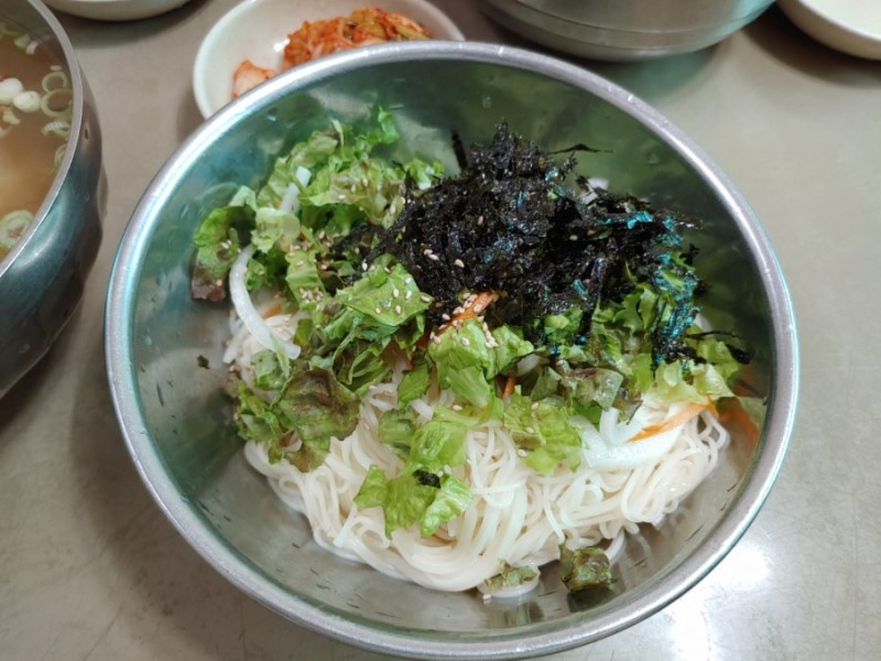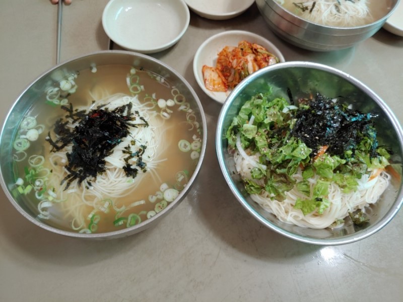 자리에 앉자마자 나오는 잔치국수와 비빔국수