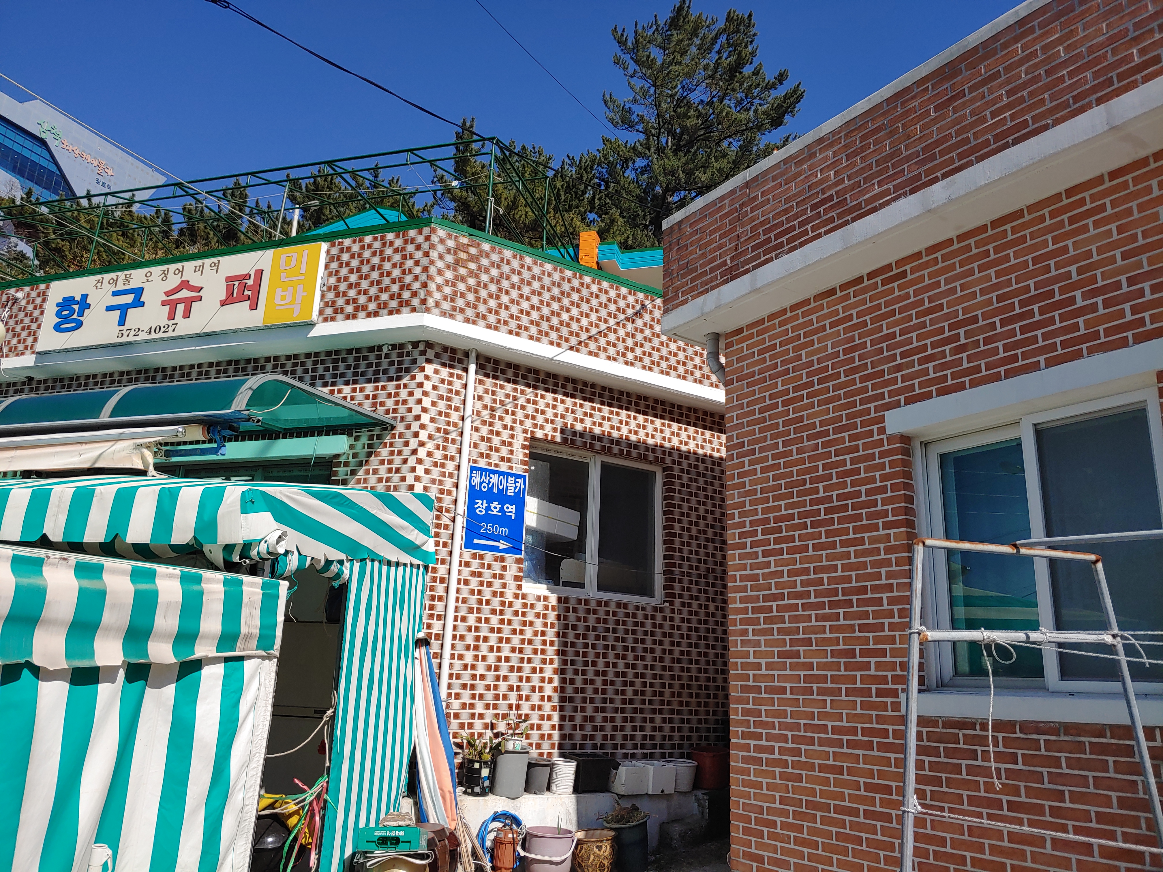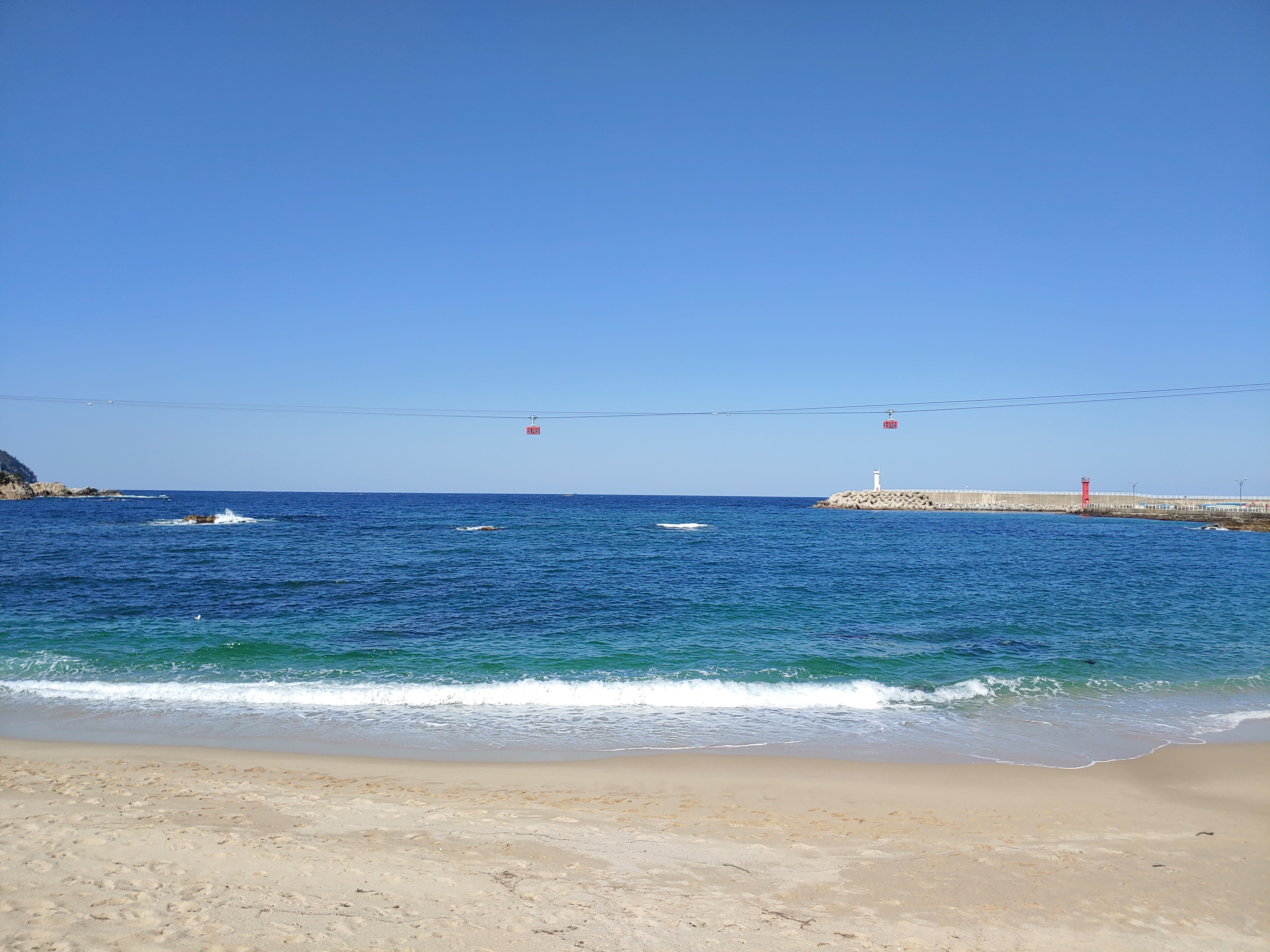 장호항 길따라 걷다 끝자락 쯤 항구슈퍼쪽에 해상케이블카 타는 곳이 있어요