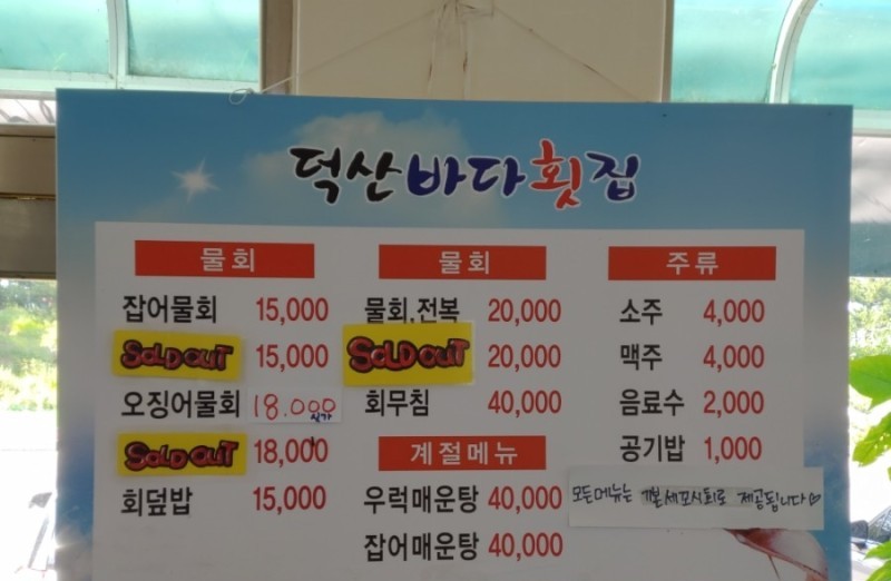 덕산바다횟집 매일 10:00 - 20:00 / 둘째,넷째 월요일 휴무 / 7월.8월 무휴