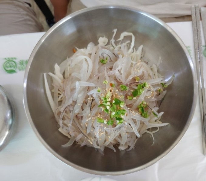 오징어물회에도 얇게 썰린 오징어회가 많이 들어있는거 보이시죠 ㅎ