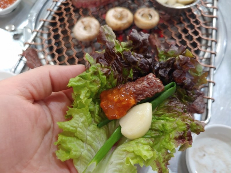 등심 부드러운게 소금 찍어서 먹어도 쌈싸서 먹어도 맛있지만 소고기는 소고기만 먹어야 맛있더라구요