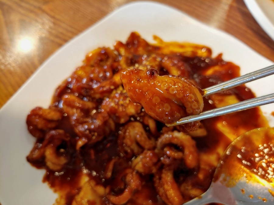 오동통한 쭈꾸미 불향이 확 느껴지는게 맛도 좋고 쫄깃한게 자꾸 손이가게되는데 쭈꾸미만 먹으면 양념때문에 쫌 짜요