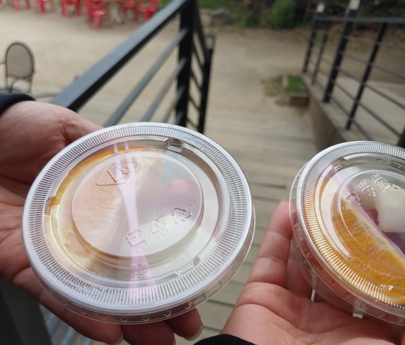 식사마치면 앙증맞게 포장된 과일과 커피와 차 선택해서 야외테라스에서 마실 수 있어요
