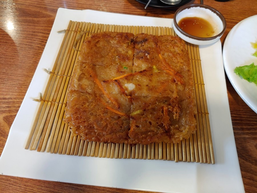샐러드와 도토리묵사발 먹다보면 야채와 쭈꾸미가 들어간 도토리전이 나와요 도토리전 바삭한게 맛있긴한데 쫌 느끼해서인지 한개정도 먹고 나머지는 매콤한 쭈꾸미와 먹으면 맛있게 먹을 수있어요