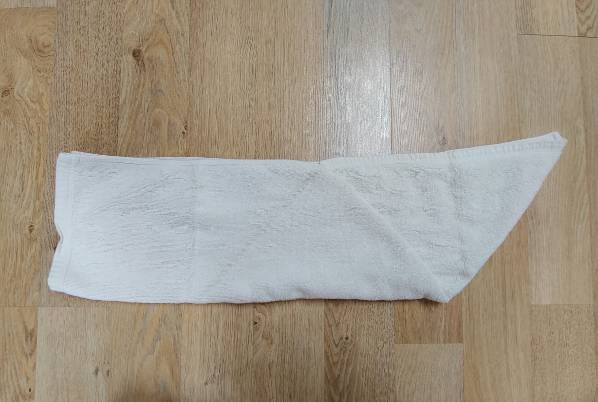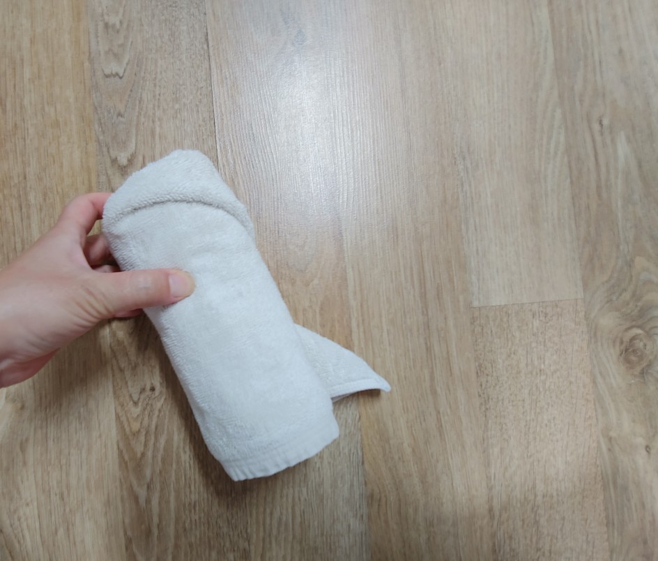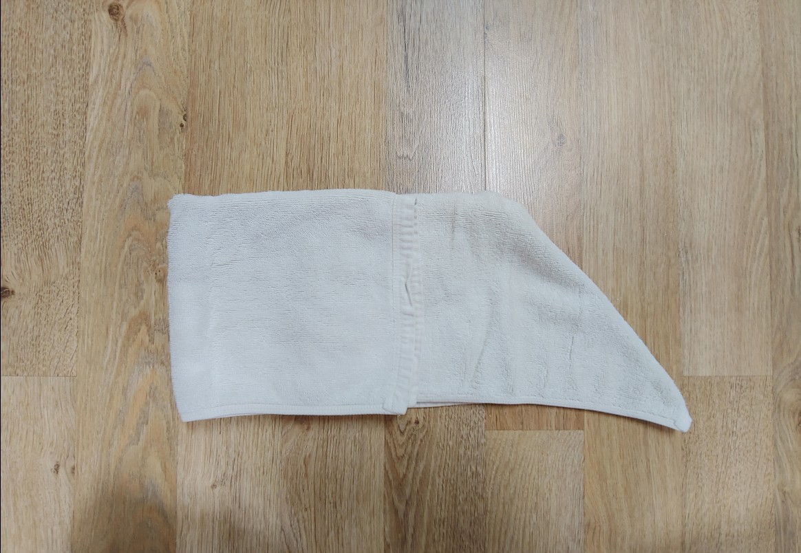수건 전체를 반 접어서 뒤집어주면 첫번째 할일은 끝났어요