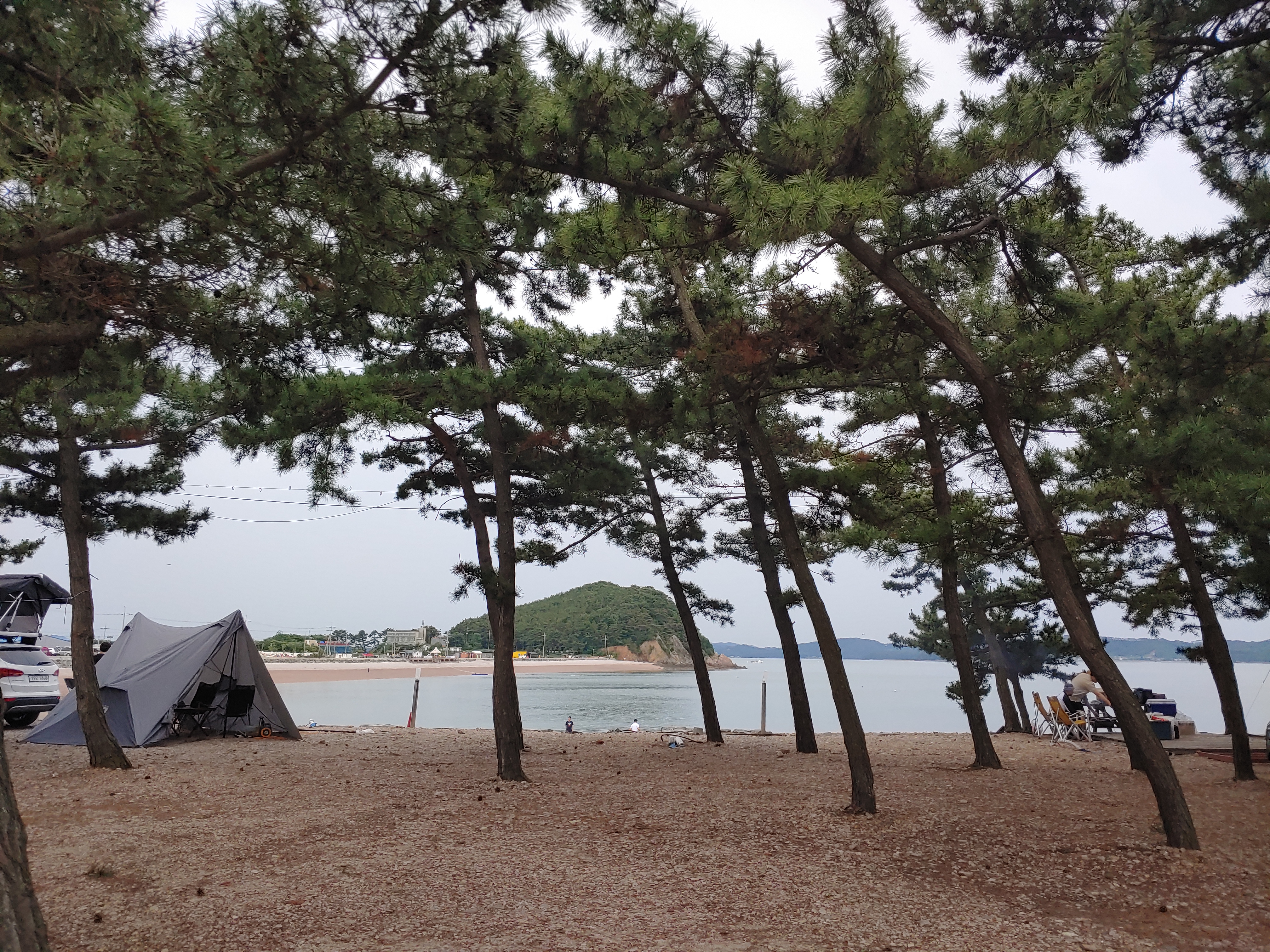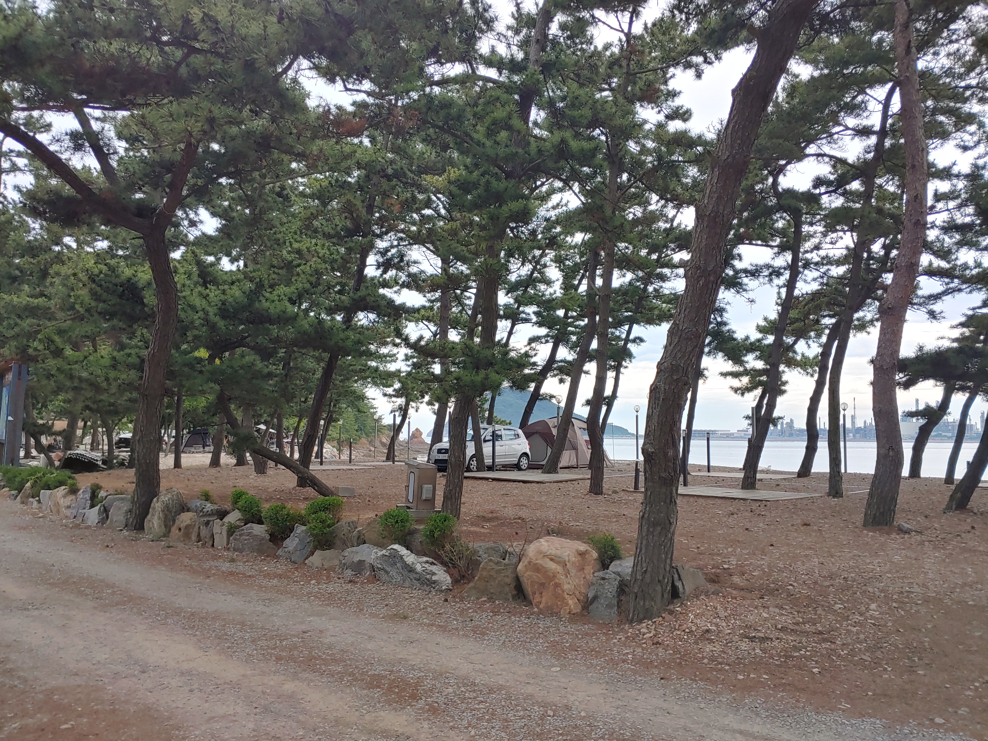 벌천포 오토캠핑장은 해송과 해송사이로 보이는 바다풍경이 너무 예쁜 곳이에요 바다뷰뿐만이 아니라 서해라 노을질때면 노을맛집으로 변하는 곳이에요