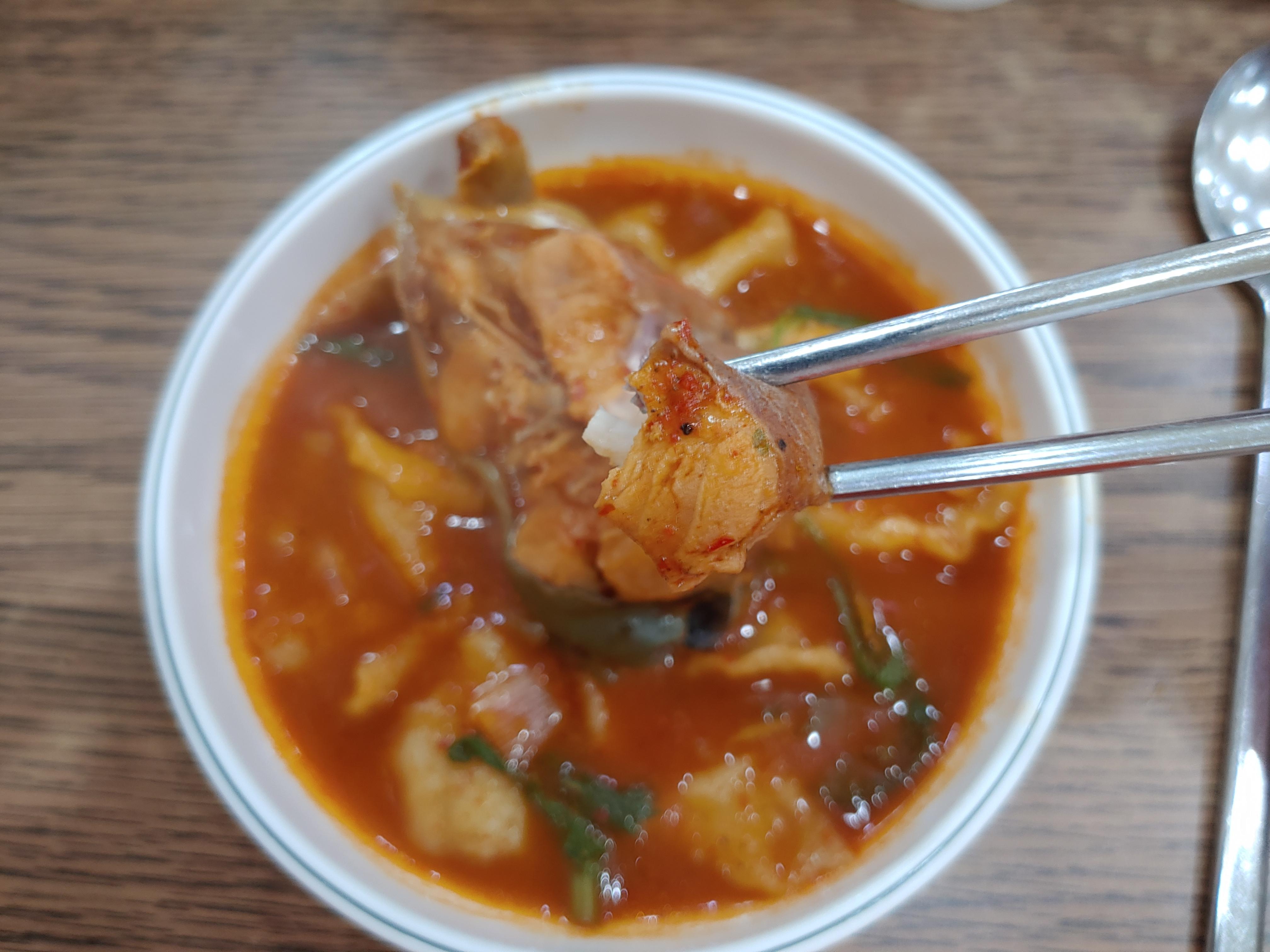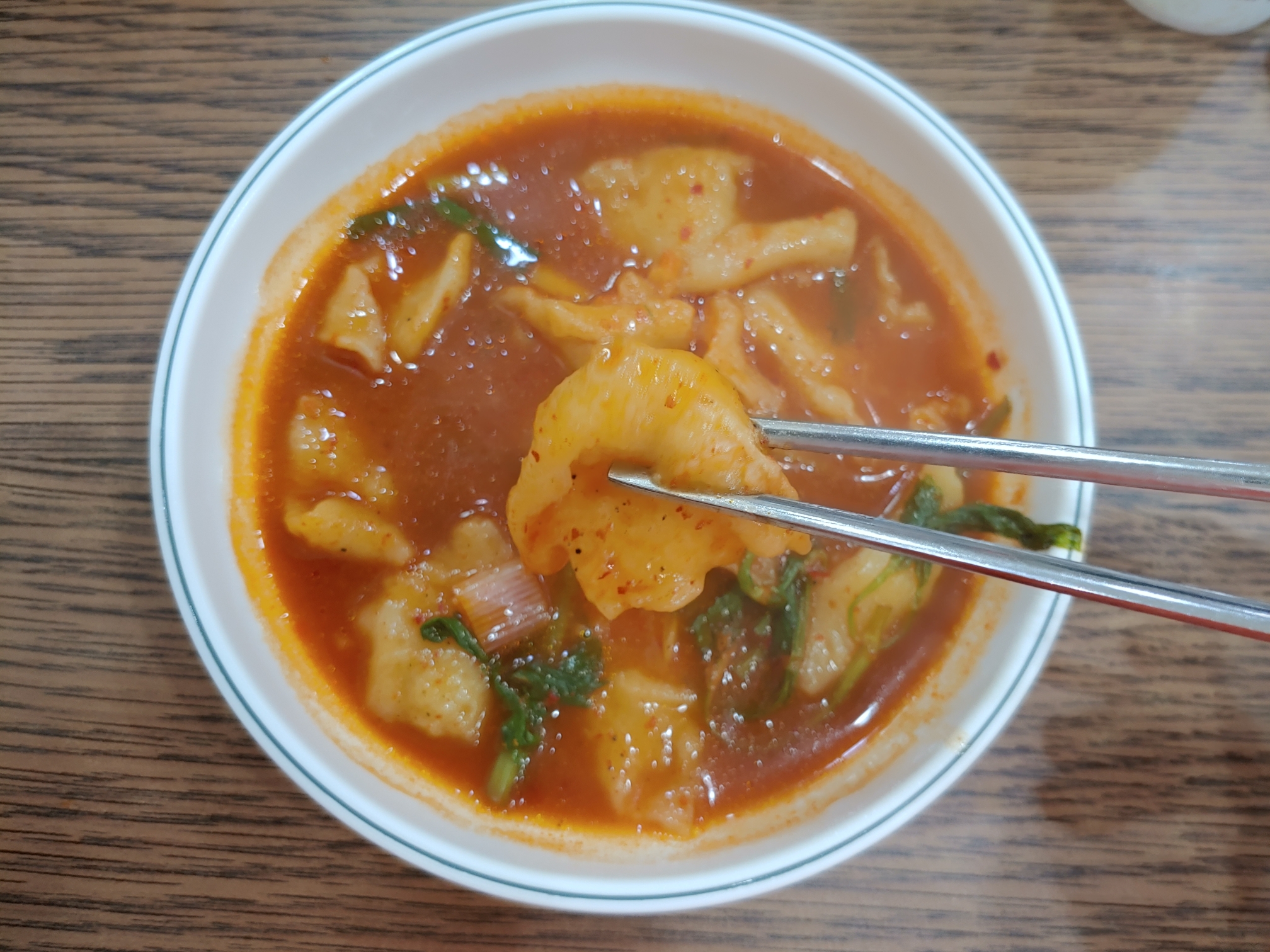 황우제 매운탕에 들어있는 수제비에요 쫀득하게 씹히는 맛이 매운탕 국물하고도 잘 어울려서인지 수제비 리필해서 먹을 정도로 맛있었어요